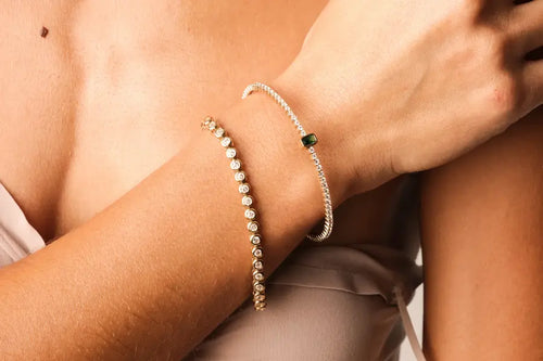 Cubic zirconia does not change color on its own. If a piece starts looking green or darkened, the culprit is the metal, not the stone, especially in alloys that contain copper or in gold-plated pieces where the plating has worn down. The CZ itself stays clear and bright; any discoloration comes from the setting reacting to the skin, moisture, or everyday wear.