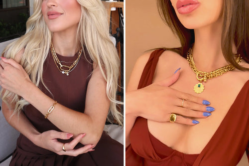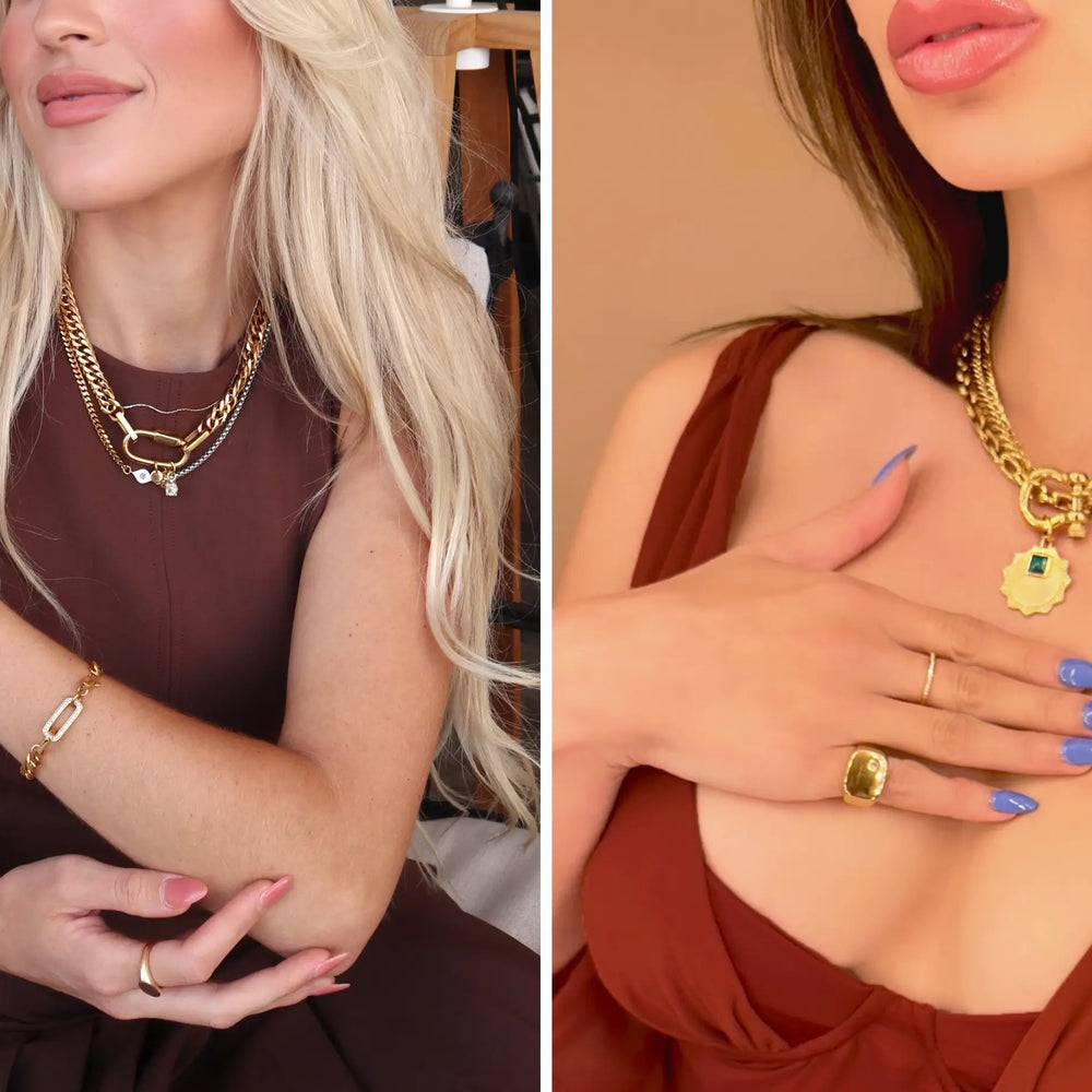 Brown, mocha, and earthy fall tones are trending this season. Pair them with chunky gold chains, statement bangles, or a bold ring stack to give your look an edge. Gold against earthy tones is the easiest way to turn “neutral” into unforgettable.