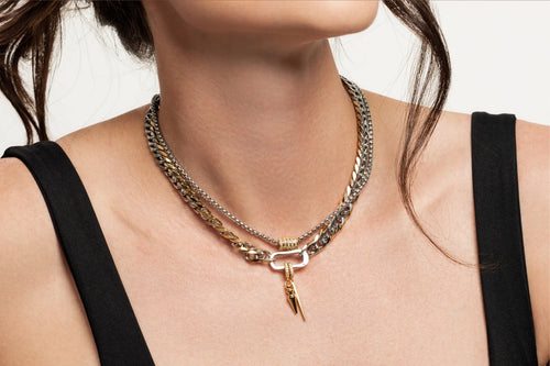To unify mixed-metal looks, consider layering around a central piece (like a pendant or toggle) that ties both tones together. And don’t be afraid to mix in your rings, bracelets or earrings to reinforce the blend.