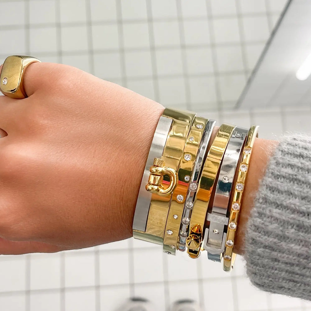 There’s nothing like a mixed metal bracelet situation to balance an outfit’s structure and fluidity. Look for sleek, geometric silhouettes or organic, hand-hammered finishes that pair contrasting metals in one bold piece. They’re perfect for stacking or standing alone as a statement.