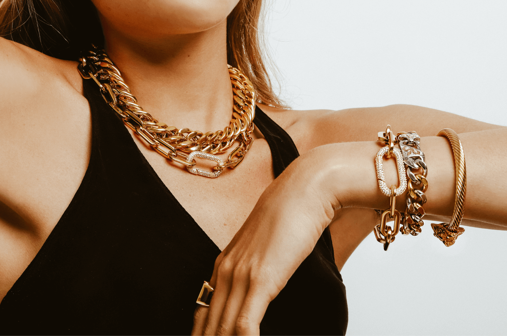 Layering offers a lot of scope for self-expression. Stacking rings and wearing layers of necklaces, such as chunky chains and dainty chokers, are a lot of fun.