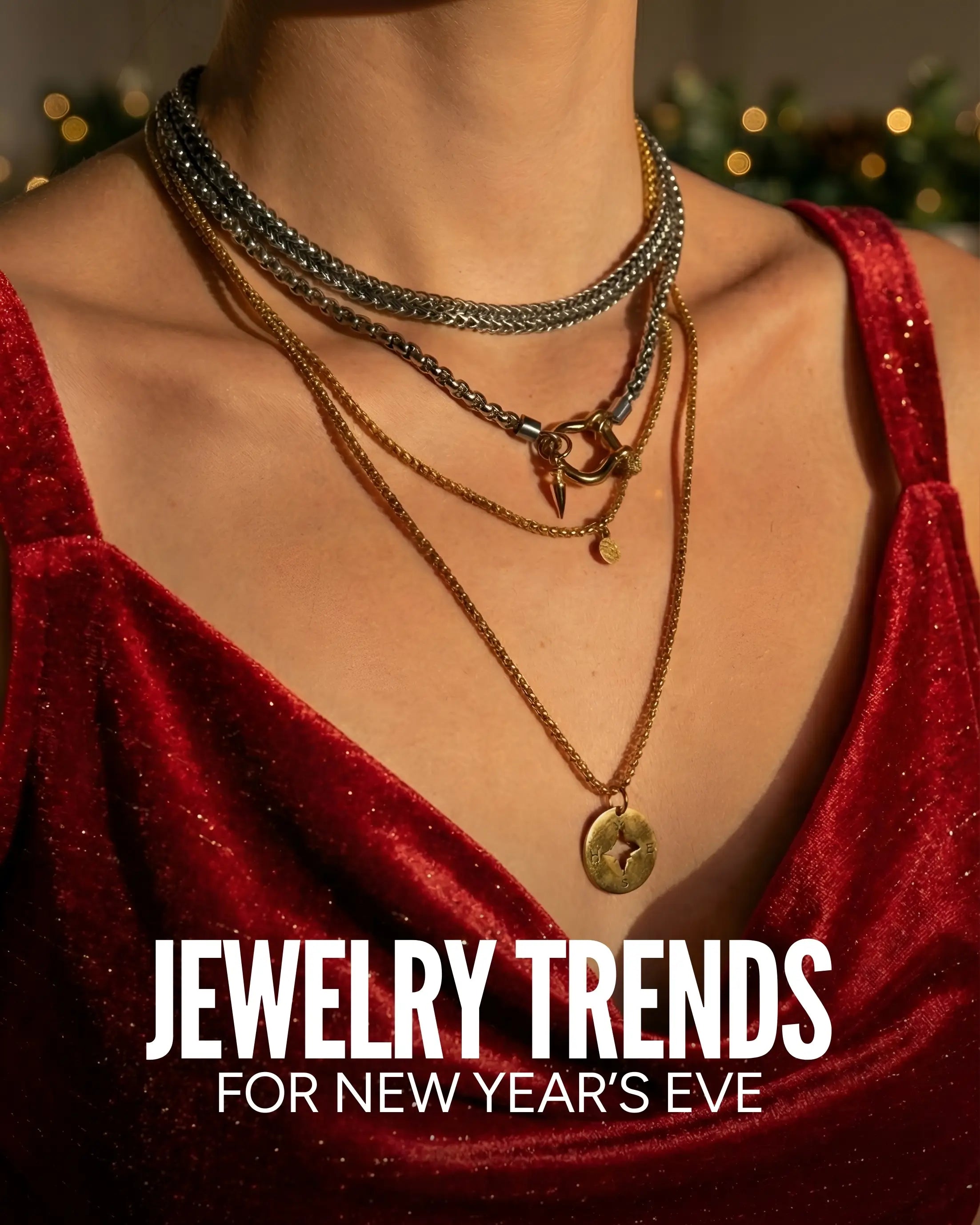 Layered necklaces stay strong this winter because they work perfectly with the season’s thicker outfits. Sweaters, turtlenecks, and structured tops create a clean base that makes stacked chains stand out. People love this trend because it adds dimension and lets you mix pieces that reflect your style.