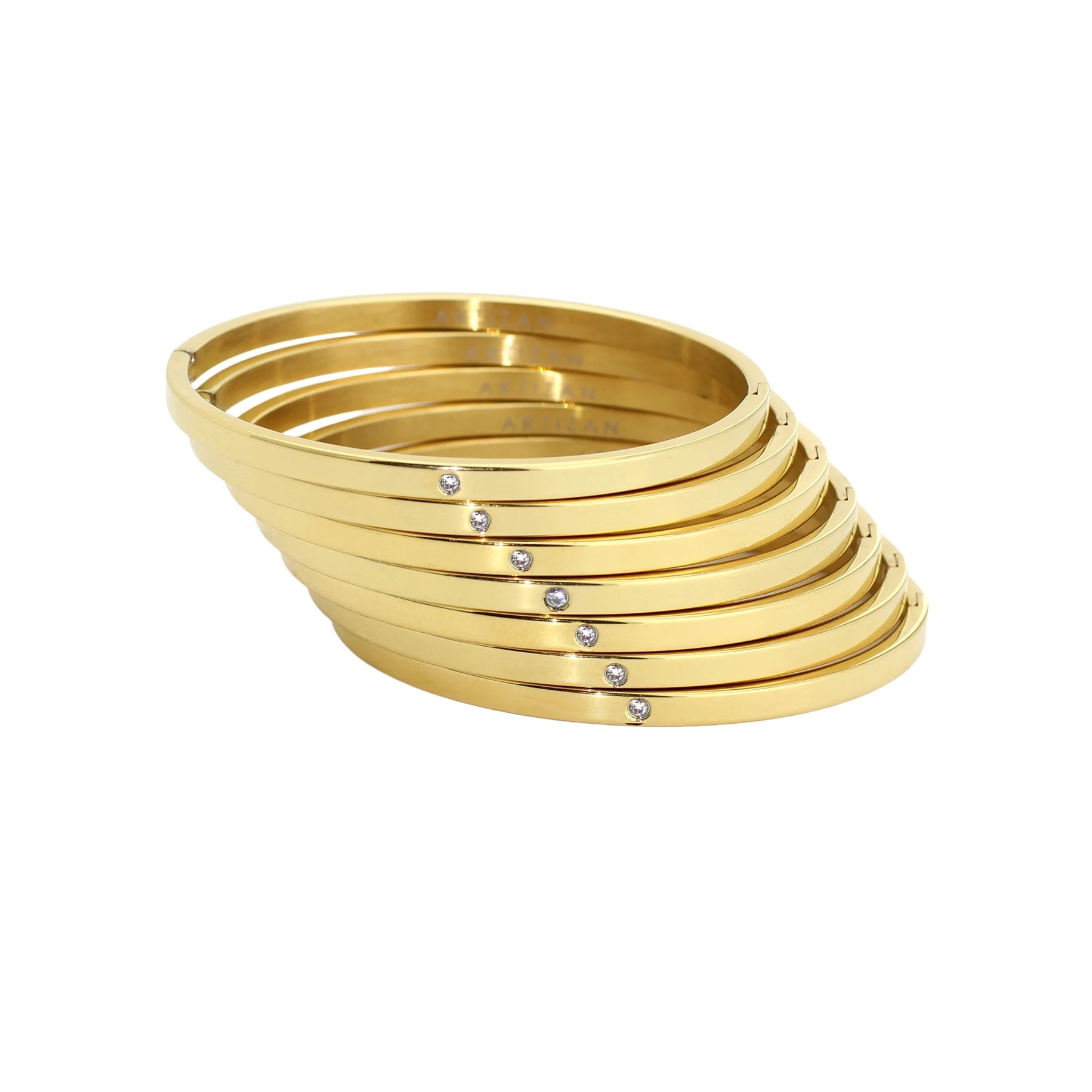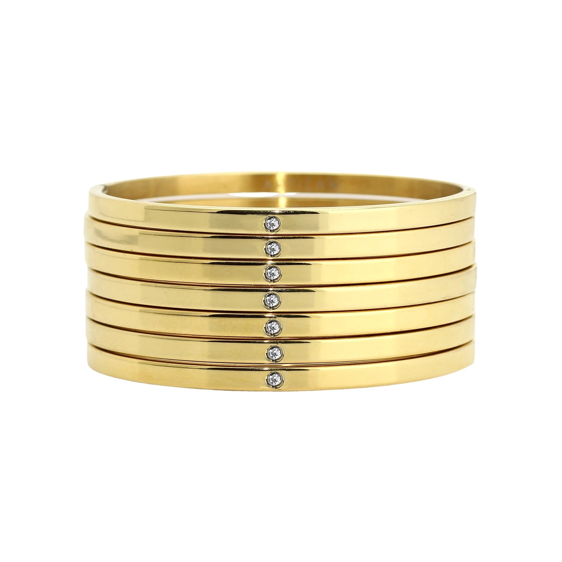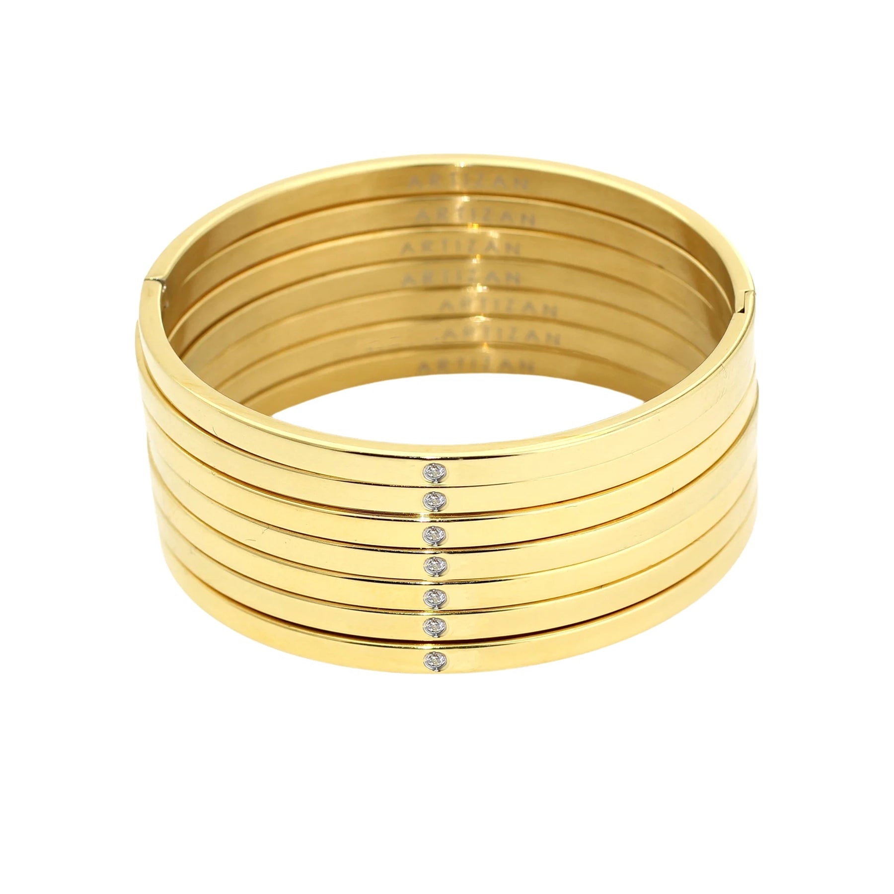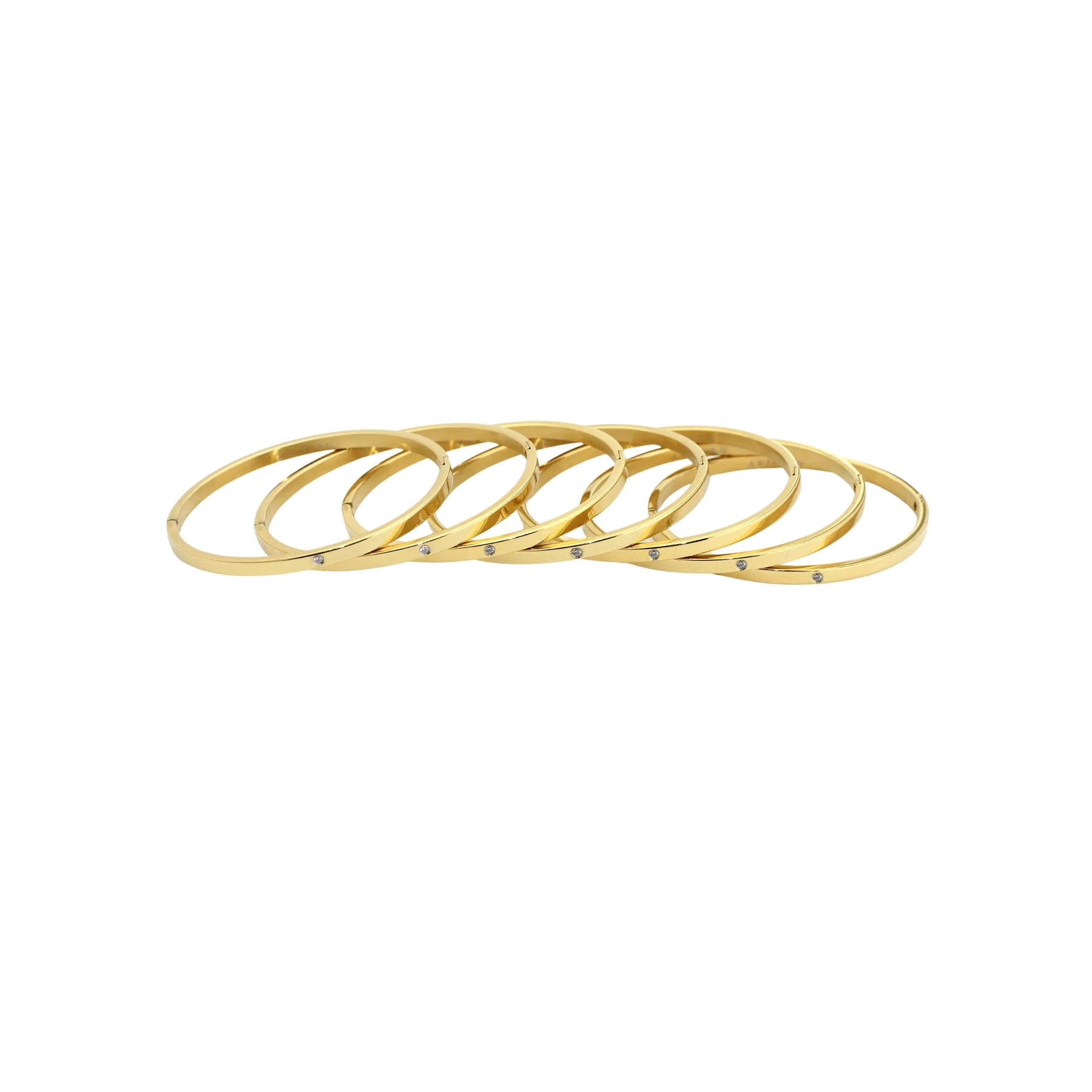 Weekly set of seven polished gold-tone bracelets encrusted with a one circular zirconia.