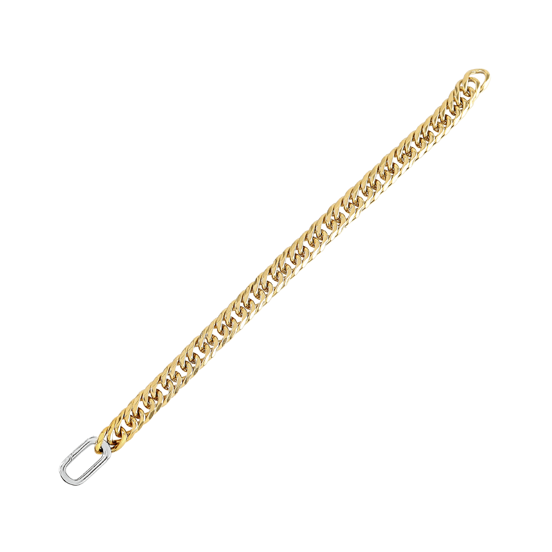 The JUST CLICK BRACELET, a single chunky gold chain bracelet featuring a silver click clasp for a modern, mixed-metal look. ||| MIX