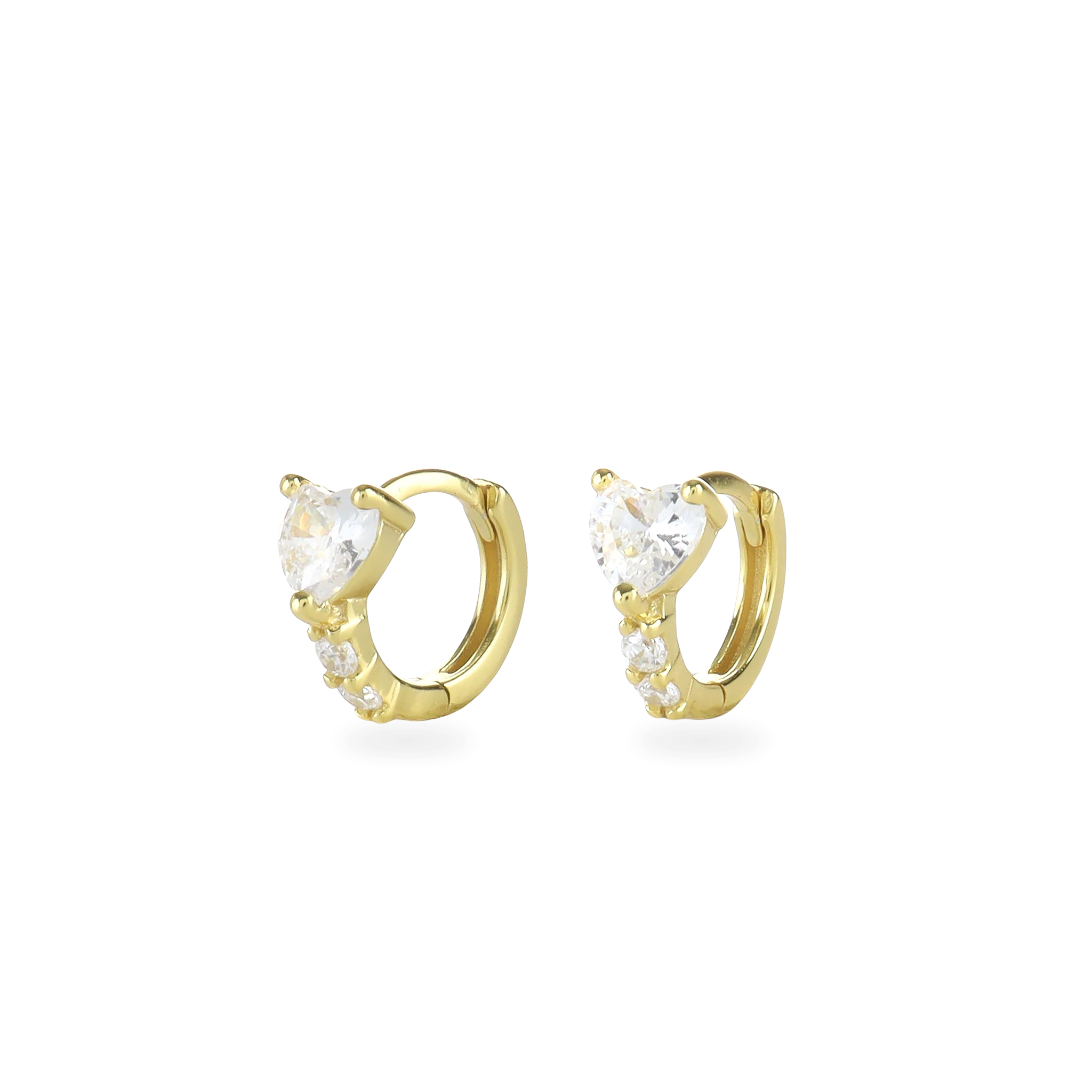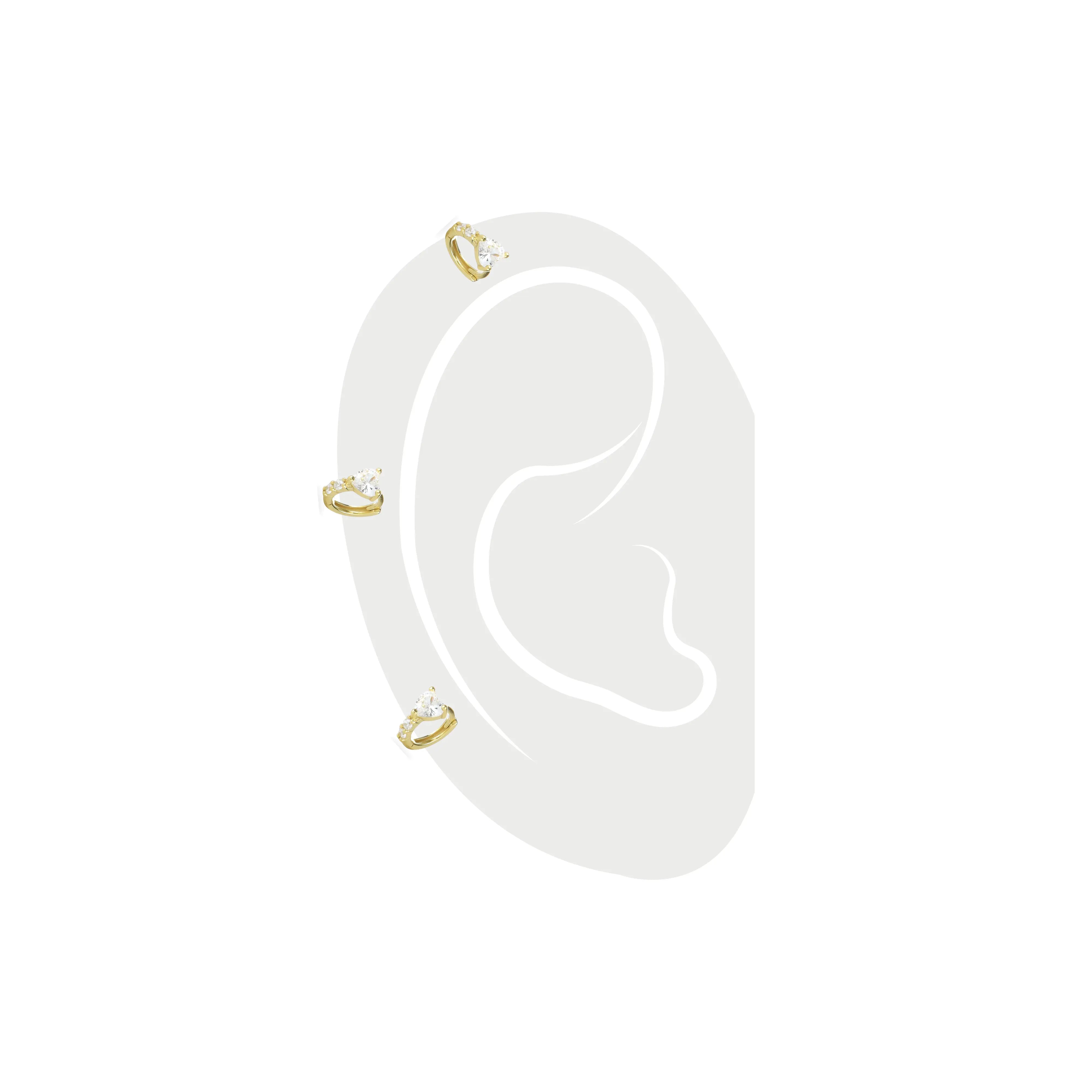 The One Stone Gold Piercing Hoops, which are gold hoop earrings, feature a central heart-shaped stone with additional sparkling accents along the band.