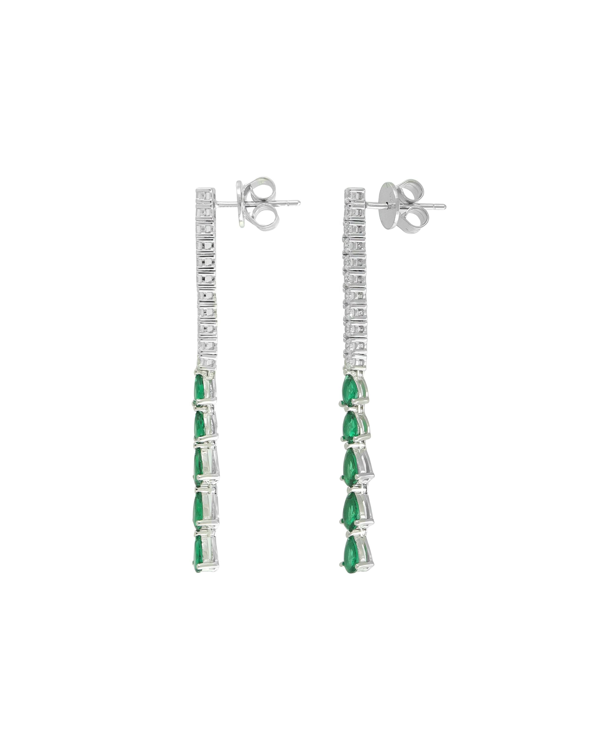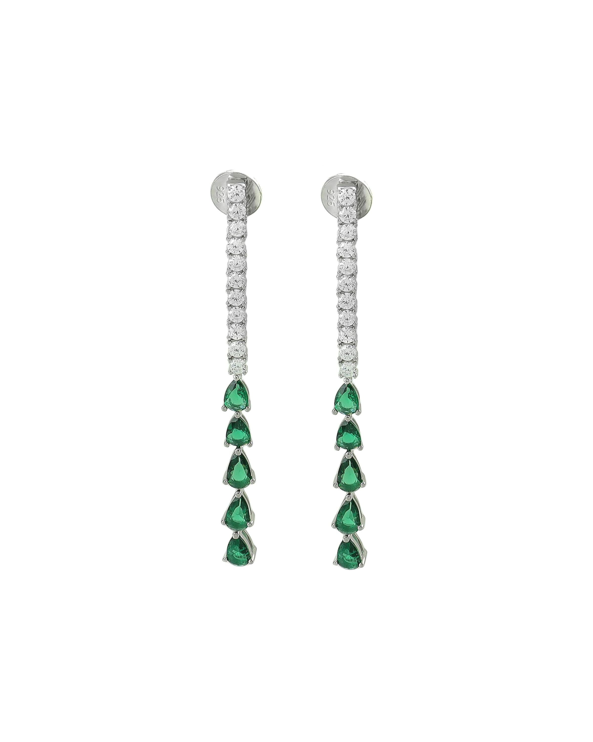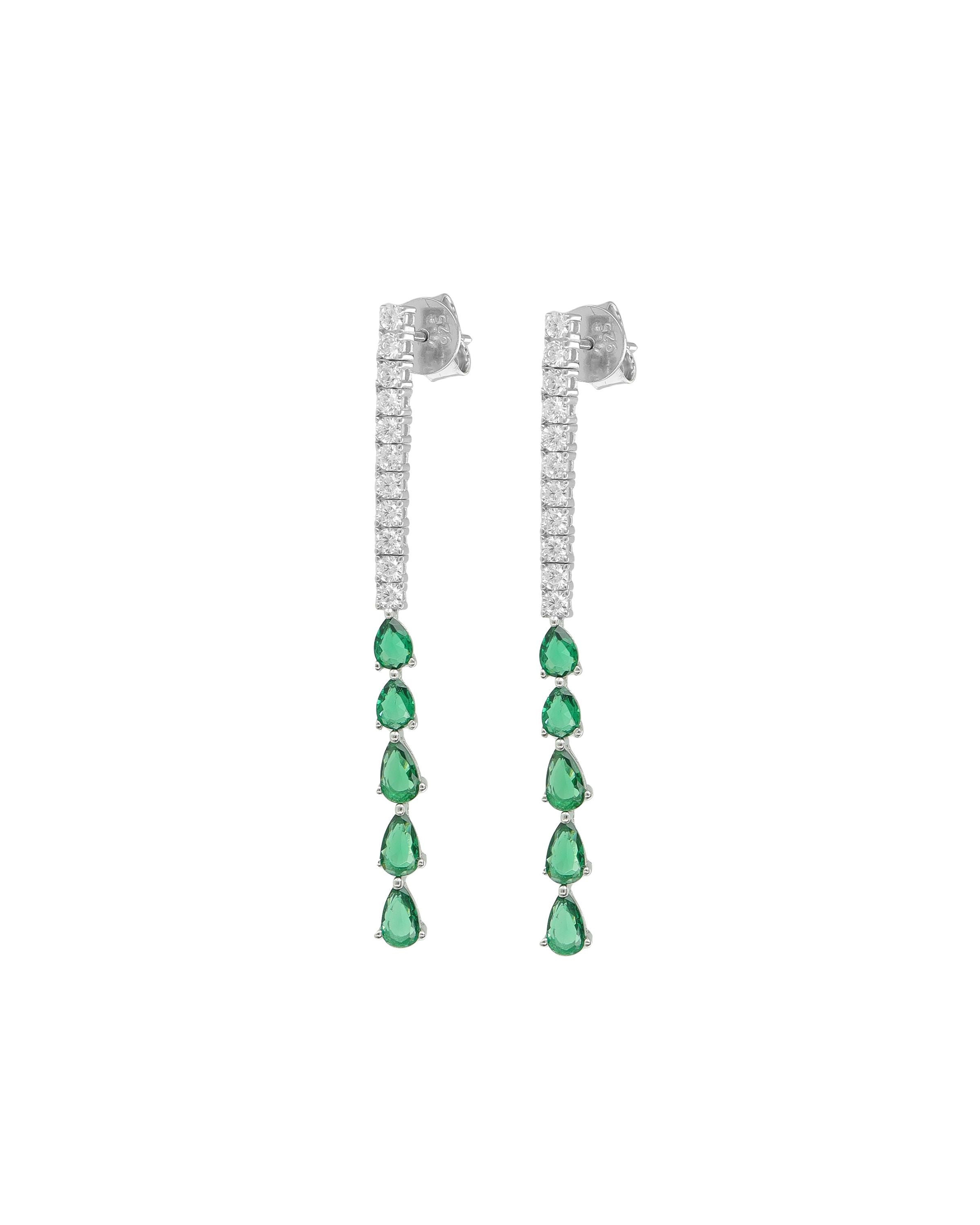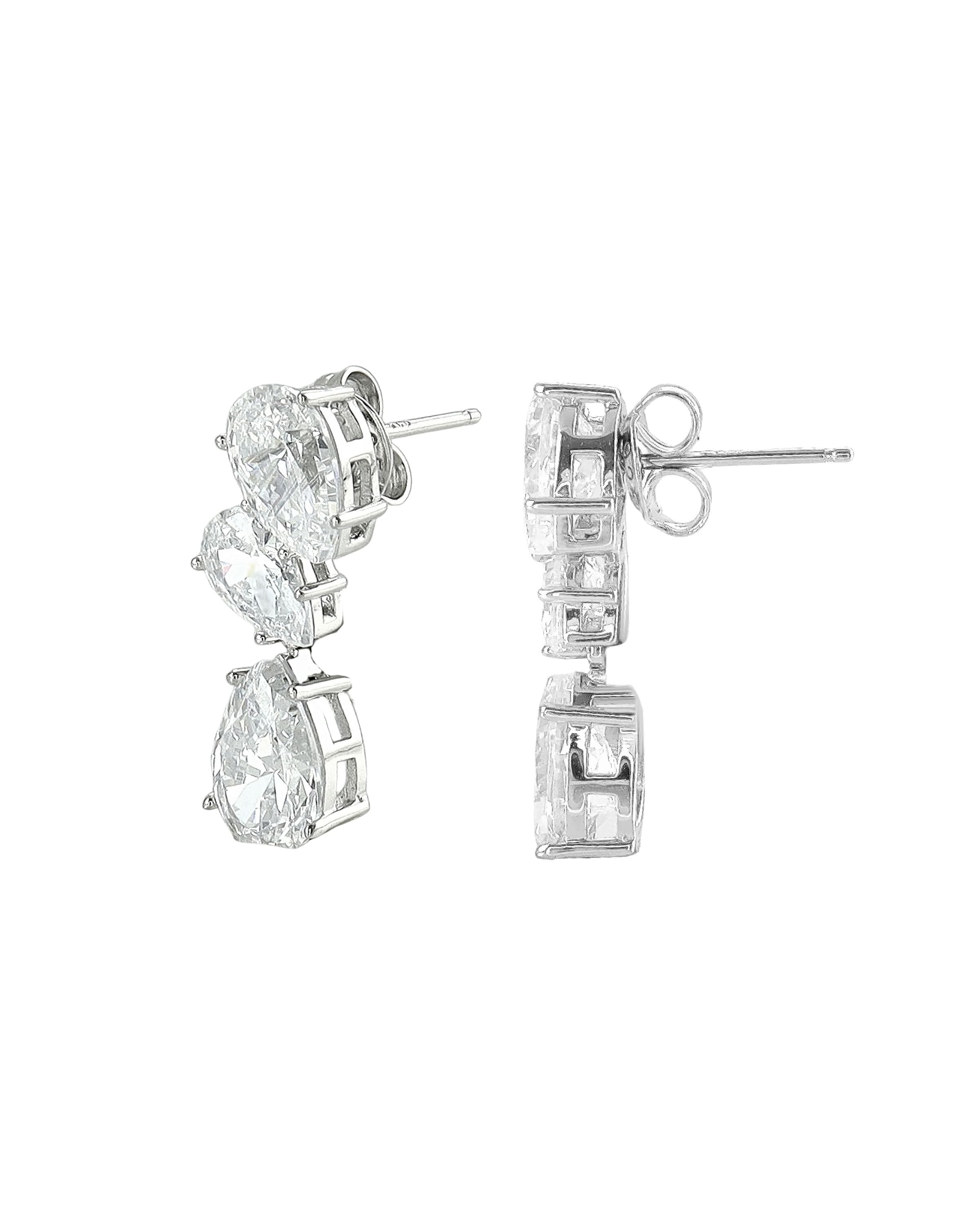 The Positano Earrings is a pair of of 925 sterling silver and Cubic zirconia climber earrings. The climber earrings are each made of 7 leaf-shaped cubic zirconia stones.