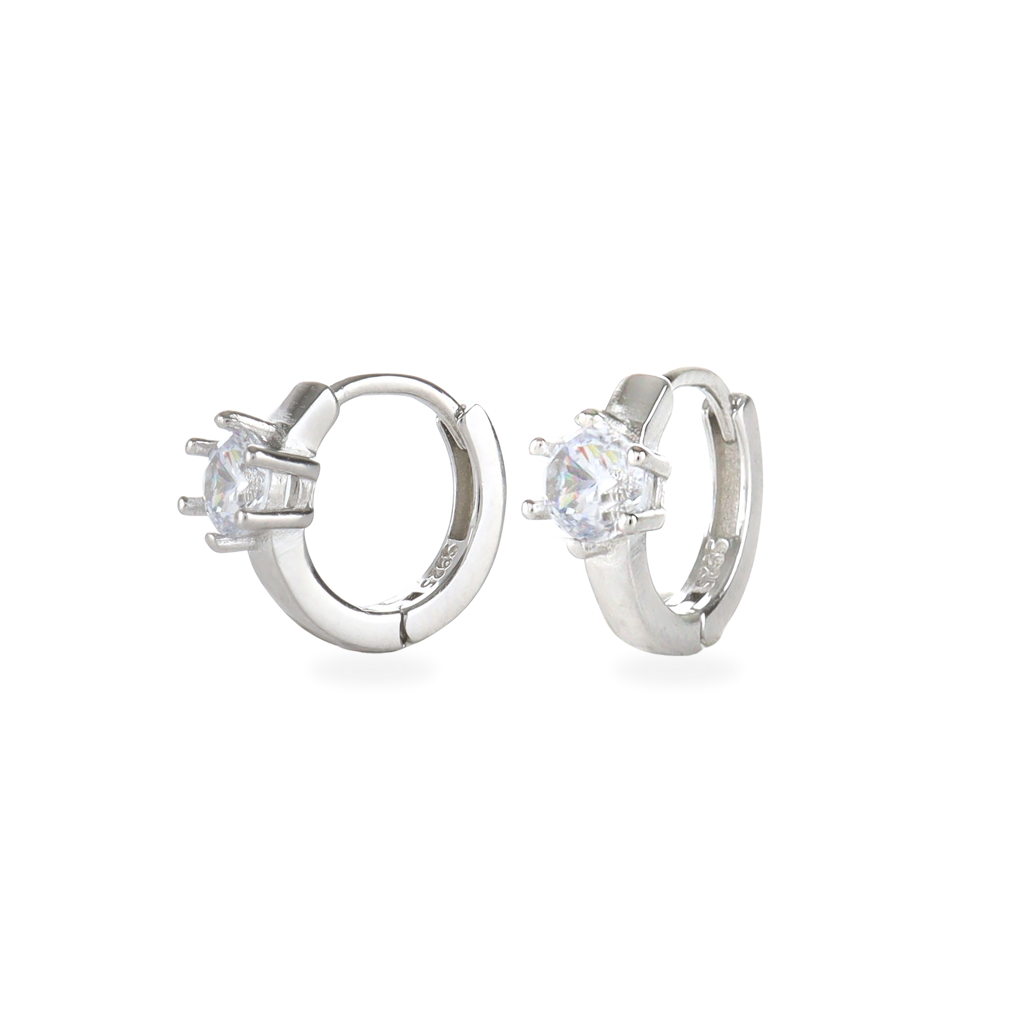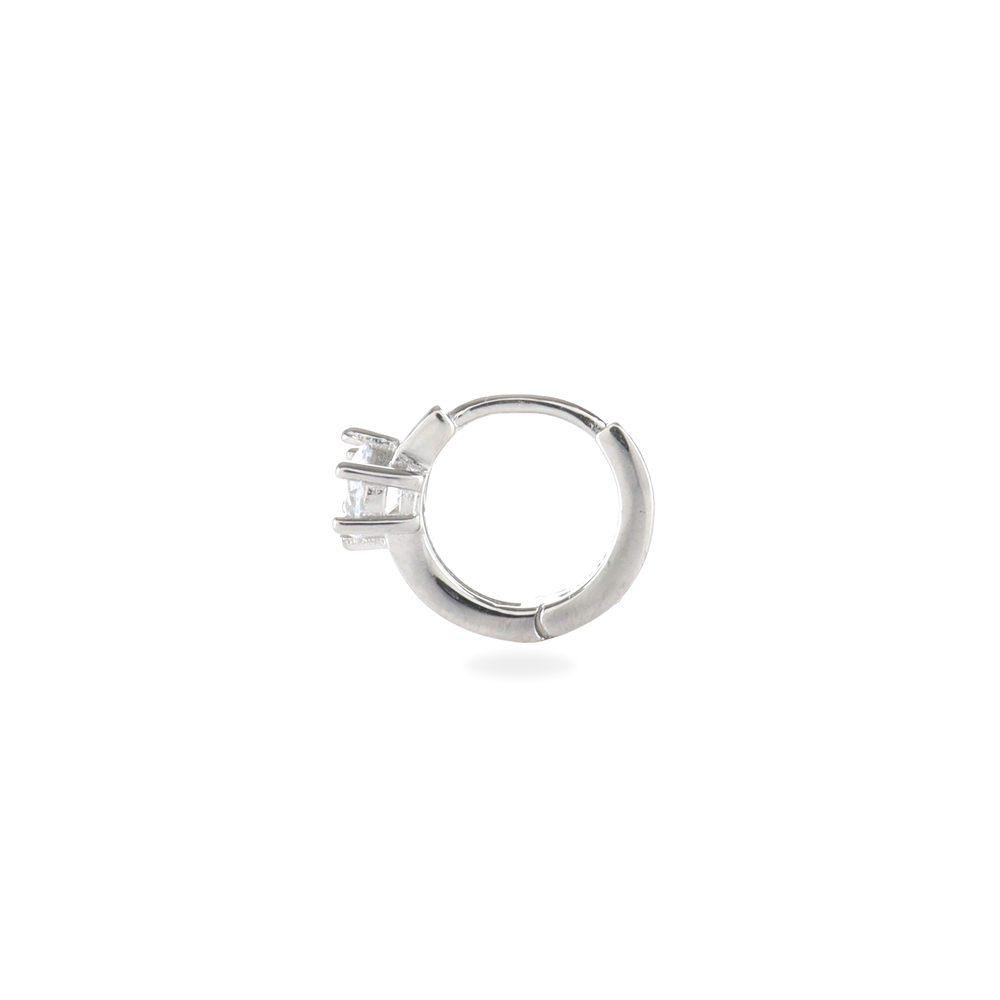 A must-have piece for your jewelry box. This elegant pair of piercing hoops features one big encrusted stone that catches the light when you move. Pair them with your favorite black blazer and watch the look come to life. Made from 925 Sterling Silver.