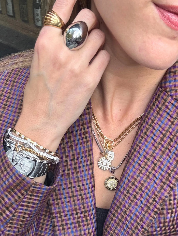You can mix and layer mixed metal rings, necklaces, bracelets, charms, and earrings to create your own signature style. Browse our mixed metal earrings and mixed metal bracelets collections to find pieces you love.