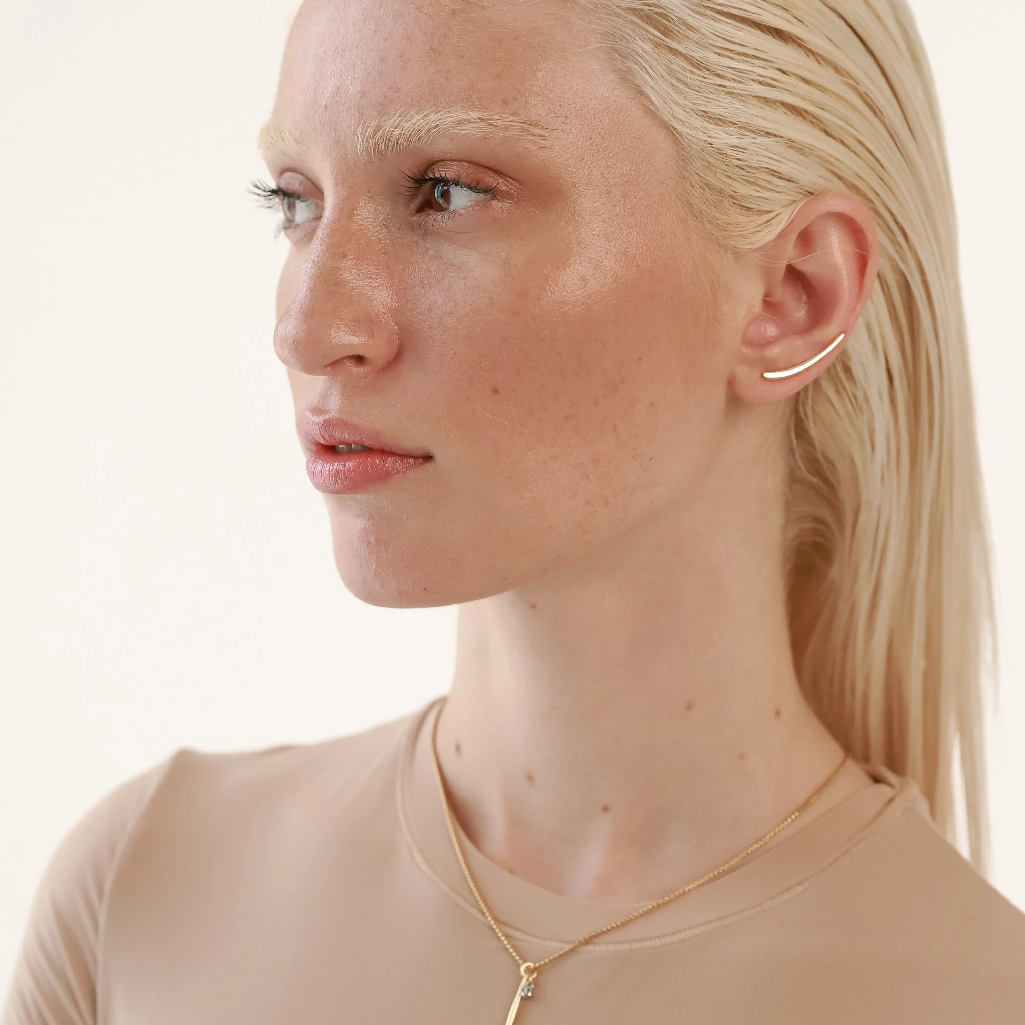 The Full Eternity Ear Cuff, which is a gold ear cuff, features intricate detailing for a sleek and modern accessory.