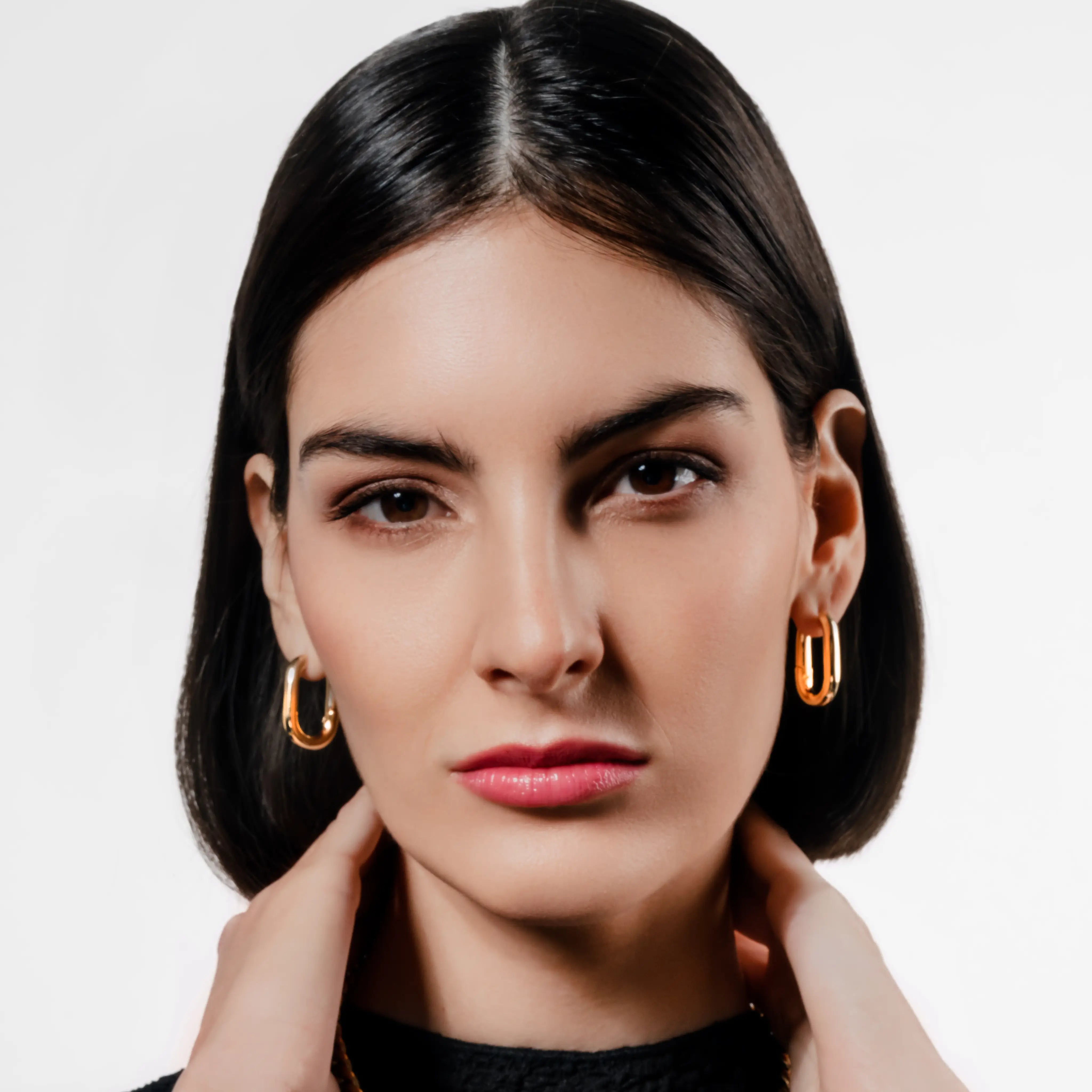 Gold and silver **Square Mix Hoops Earrings**, featuring a bold geometric square and circular hoop design.