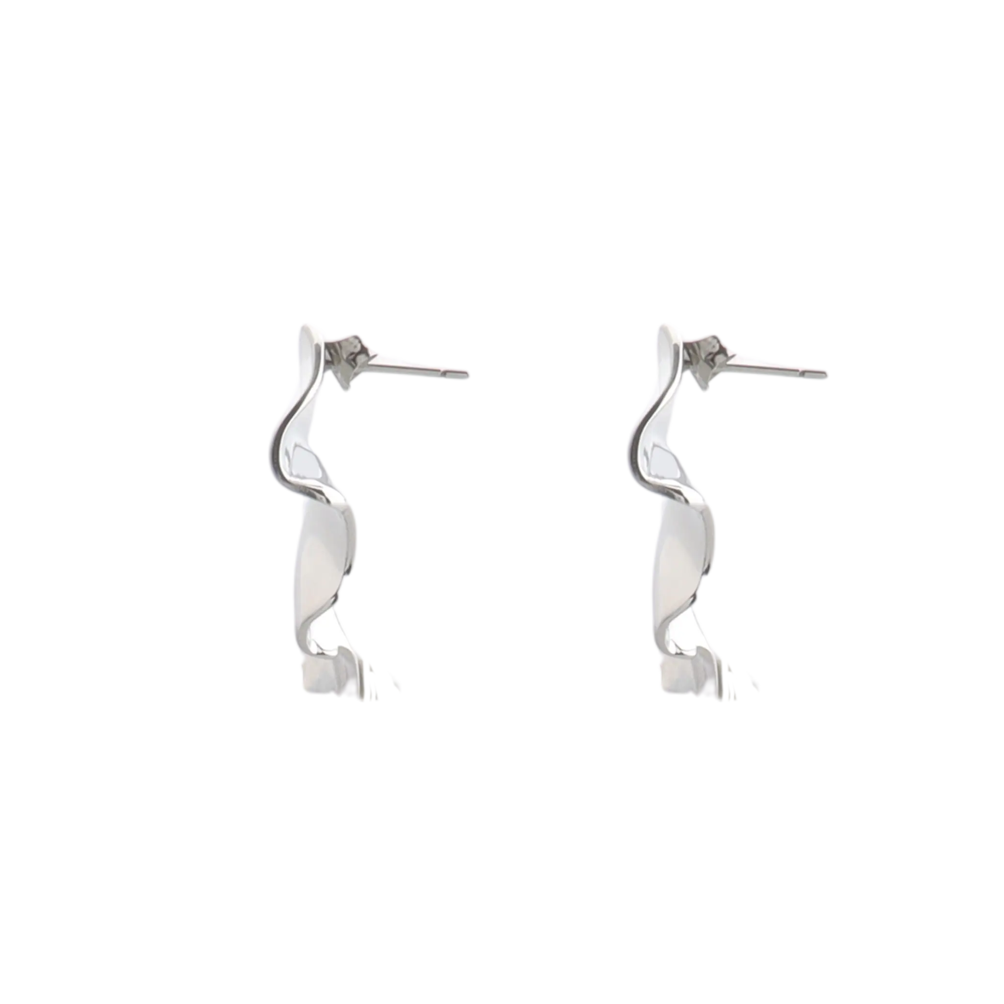 WAVES OF SILVER EARRINGS, a pair of textured, shiny silver earrings with a wavy design.