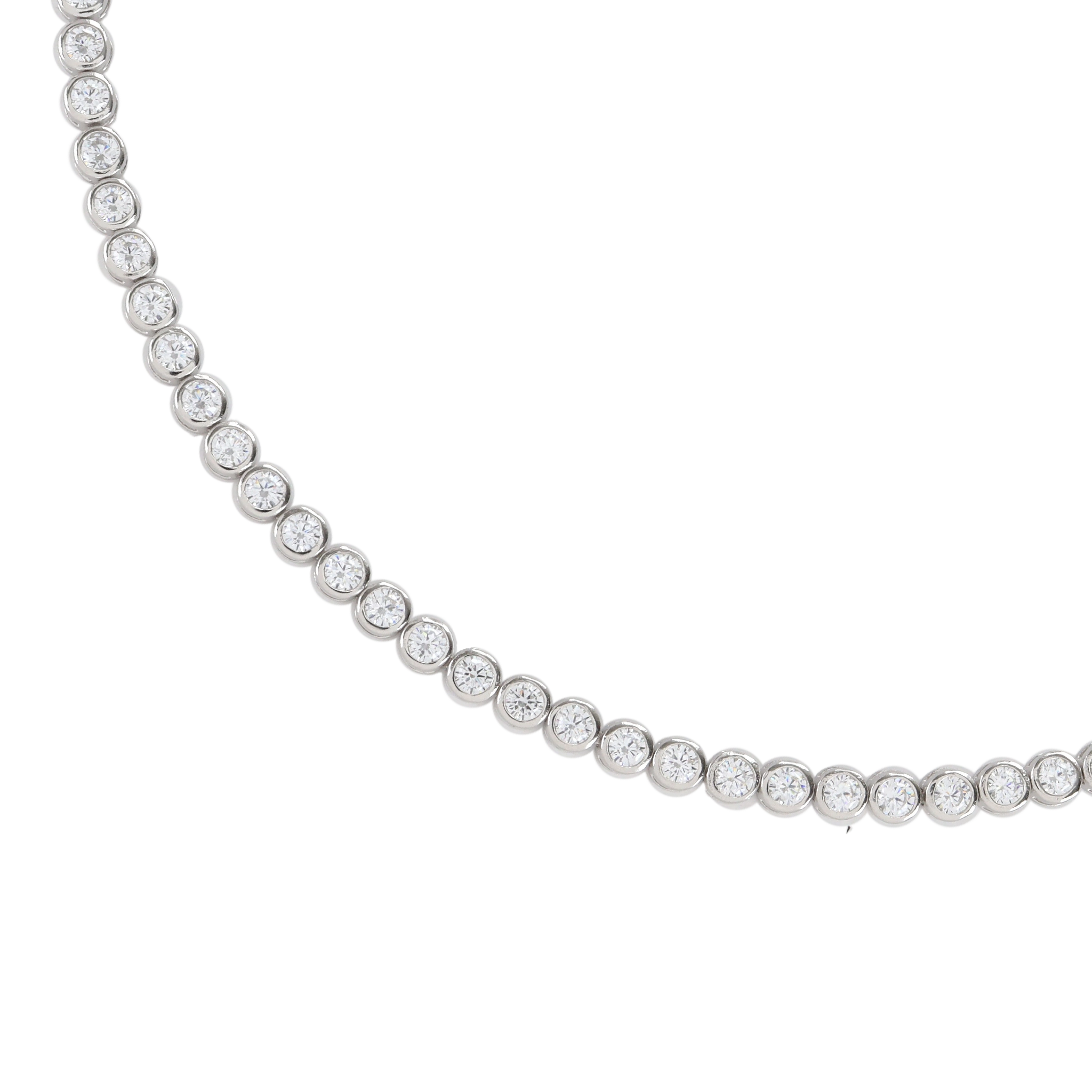 Close-up of a single ROUND CUT RIVIERE TENNIS NECKLACE featuring round-cut white stones in a four-prong setting.
