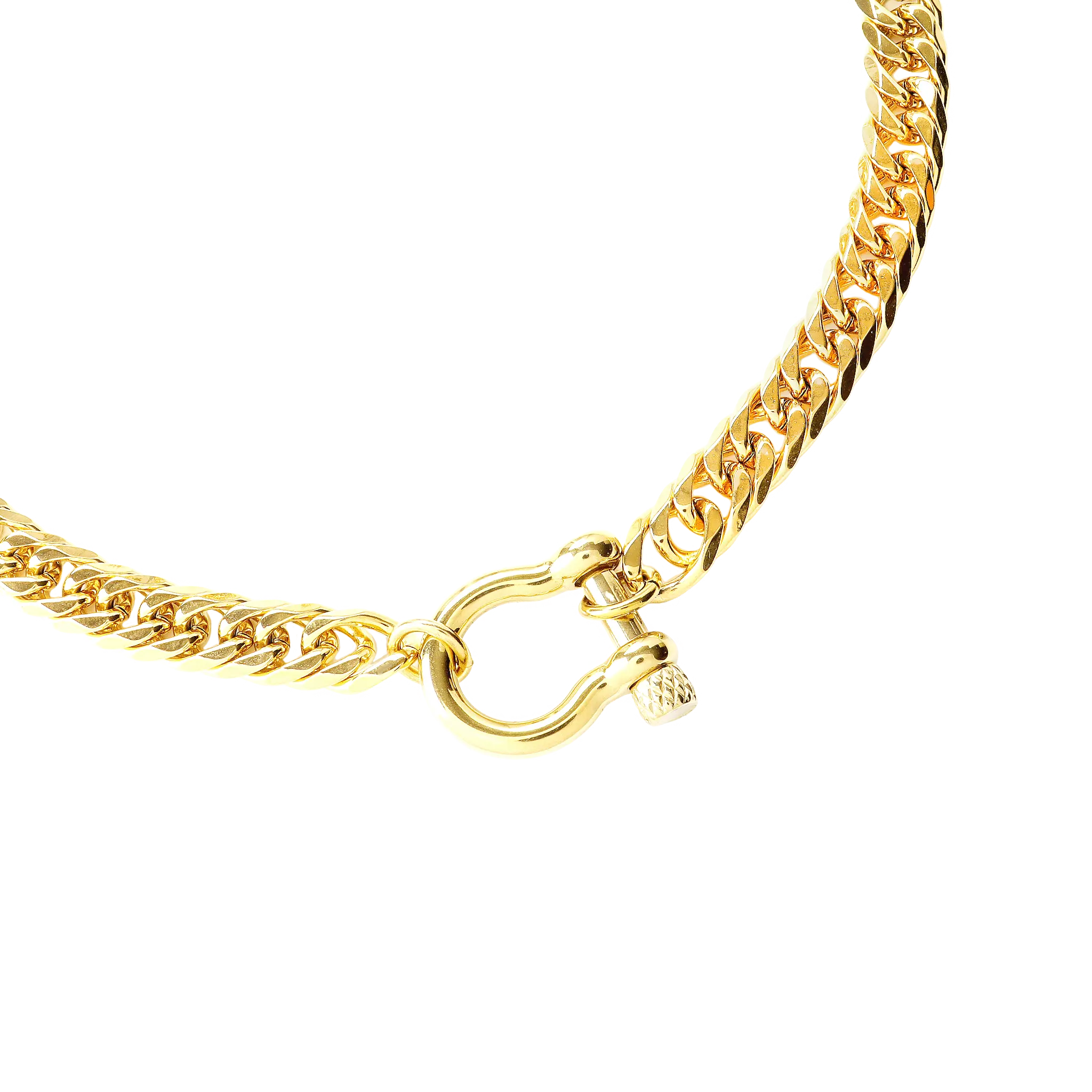The Herradura Signature Charm Party, a mixed-metal necklace featuring a gold chain, silver-tone herradura clasp, and 2 charm accents. ||| SILVER