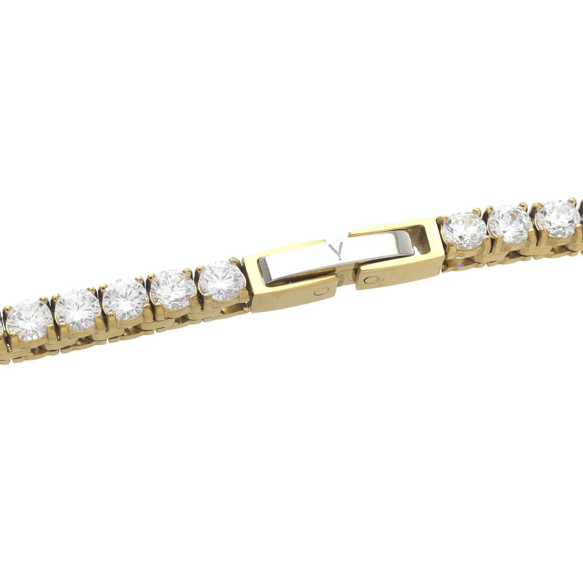 3 PRONG GRADUATED GOLD TENNIS NECKLACE IN CZ