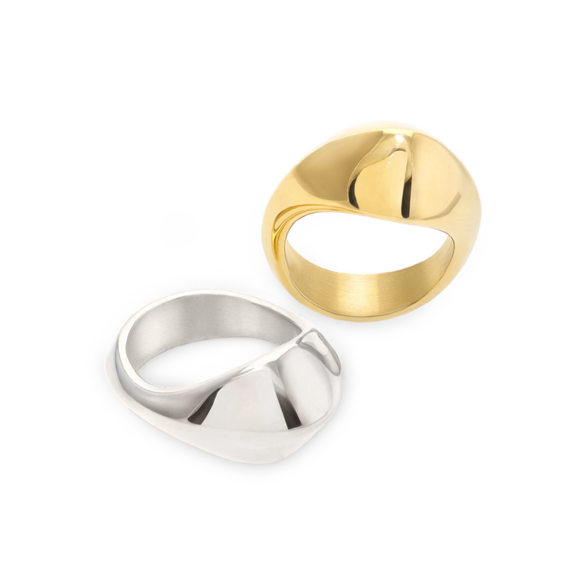 Gold and silver CHUNKY DOME RING SET featuring two bold, sculptural rings with a modern, high-shine finish for a statement look. ||| MIX