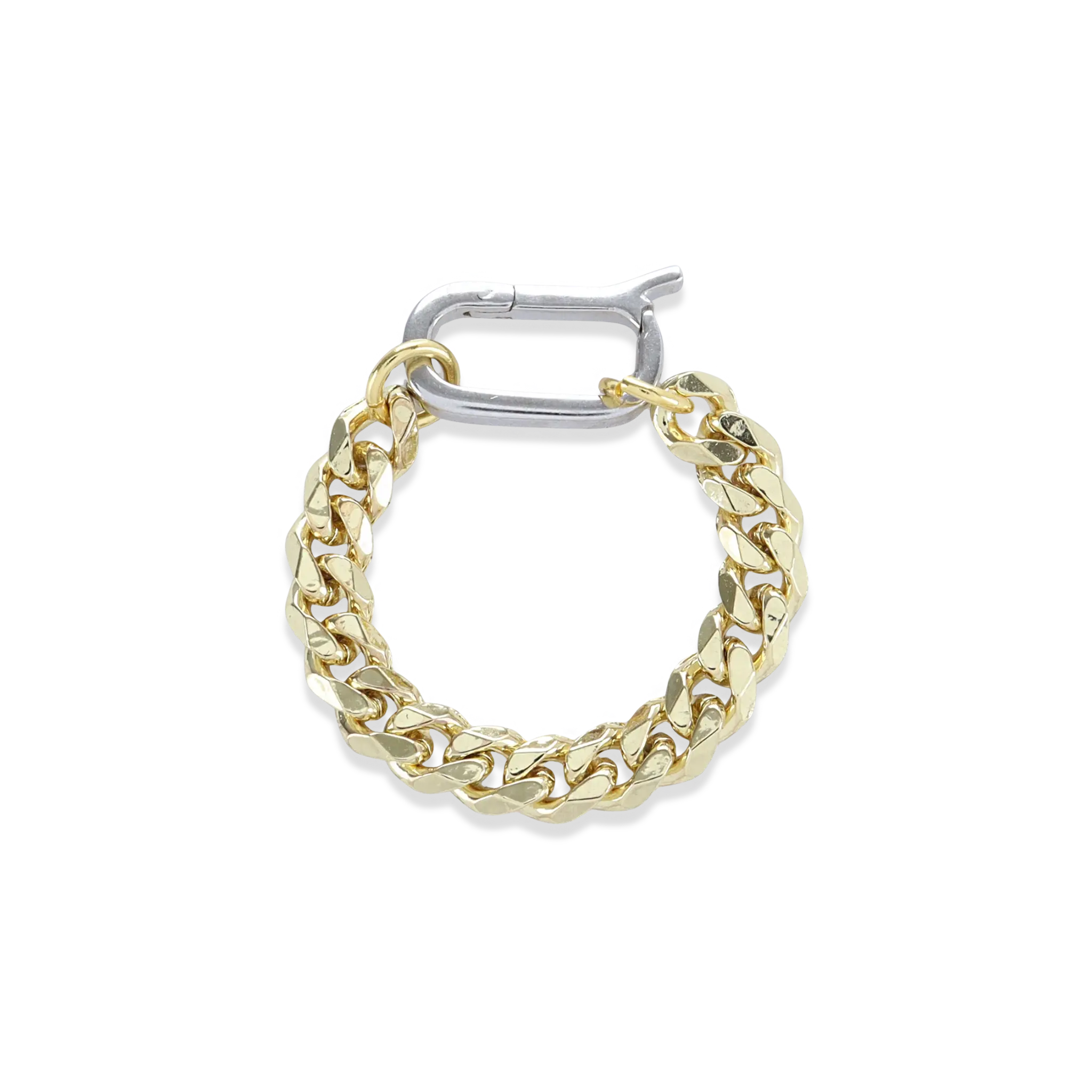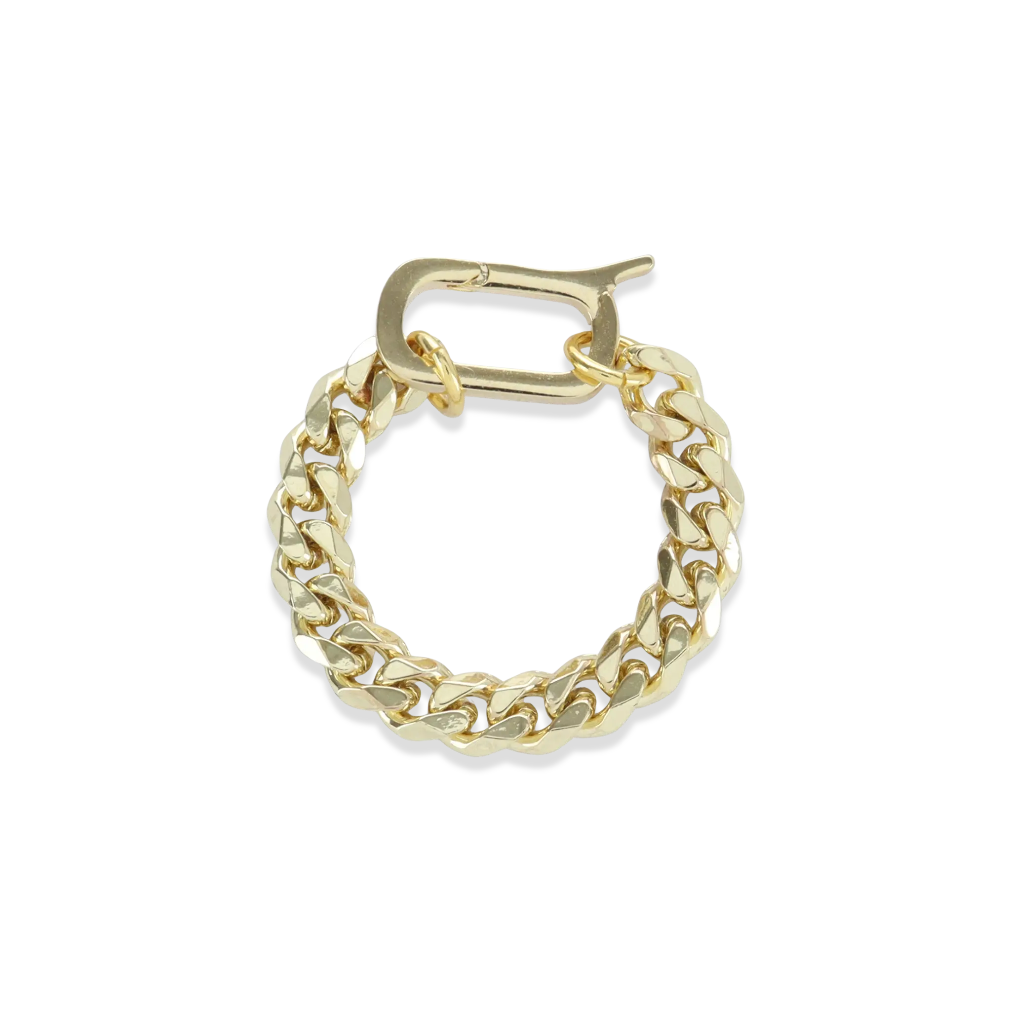 The MINIMAL CAN OPENER CHAIN RING, which is a bold and unique gold ring, features a chunky chain-link design connected by a sleek can opener-style clasp. This statement piece stands out on its own or can be stacked with other rings for a layered, modern look.