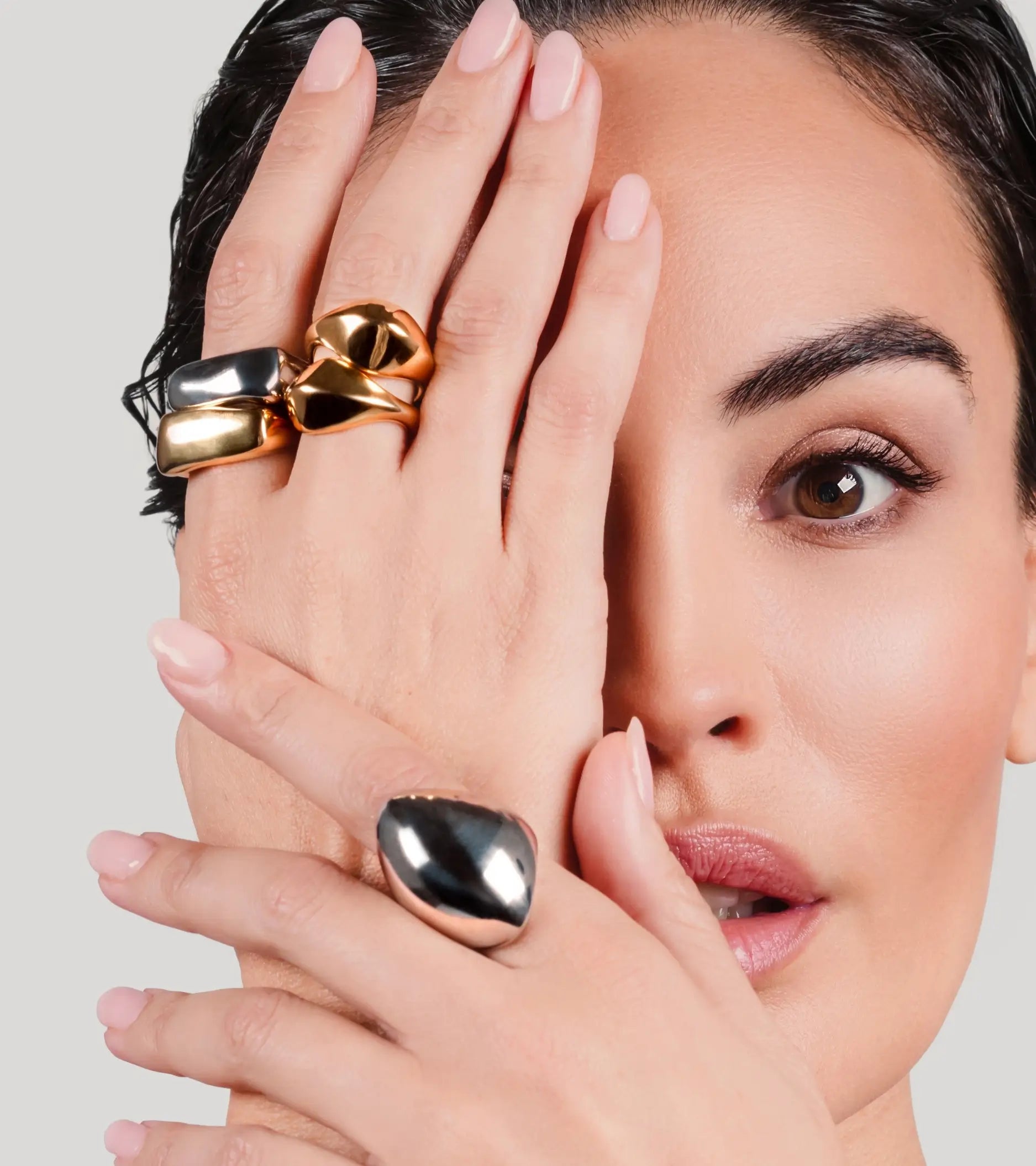 There’s no single rule, but three to five rings per hand usually create the best balance. If you prefer a more delicate style, you can layer up to four slim rings on one finger. In jewelry stacks, the key is to play until it feels like you. Layering should look easy, not overthought.