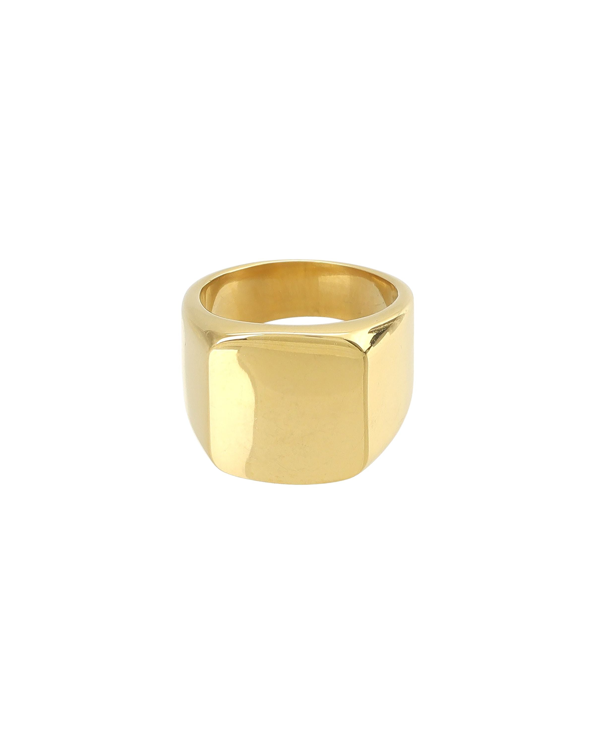 The MOVE RING in Gold which looks like a bicycle chain. It's 10mm wide and made of 18k gold plated non tarnish stainless steel. ||| GOLD