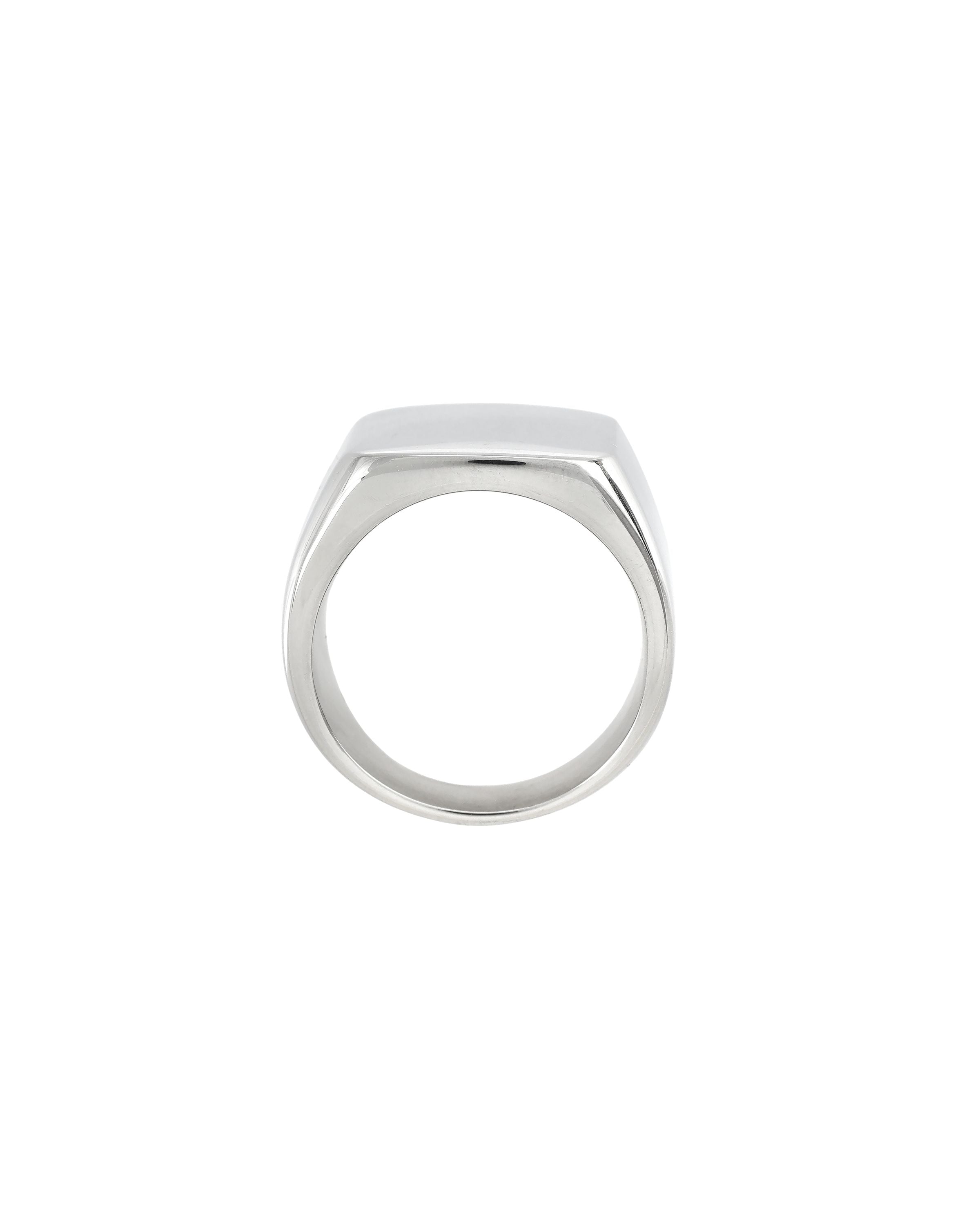 Model wearing the FOREVER RING SILVER. It is a wide ring which is made of non tarnish stainless steel and the Just Rings silver.