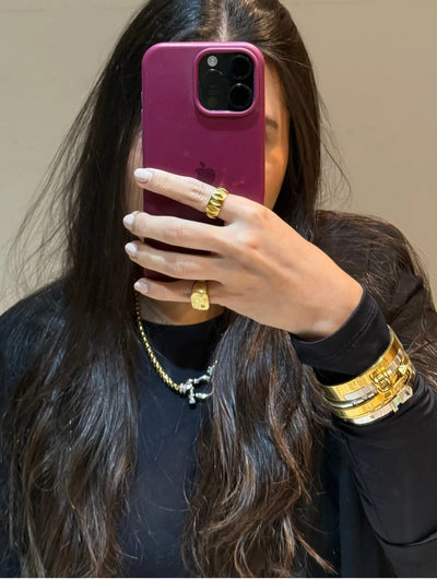 There are many ways to stack your bracelets. The most common is to start with a main piece, a standout bracelet or your favorite watch, and layer others around it. You can also mix metals and textures, combining cable, curb chains, bangles, pavé details, and different structures, from rigid bangles to flexible chains. If you’re new to stacking, the easiest way to start is with pre-styled jewelry stacks that already create the perfect balance.