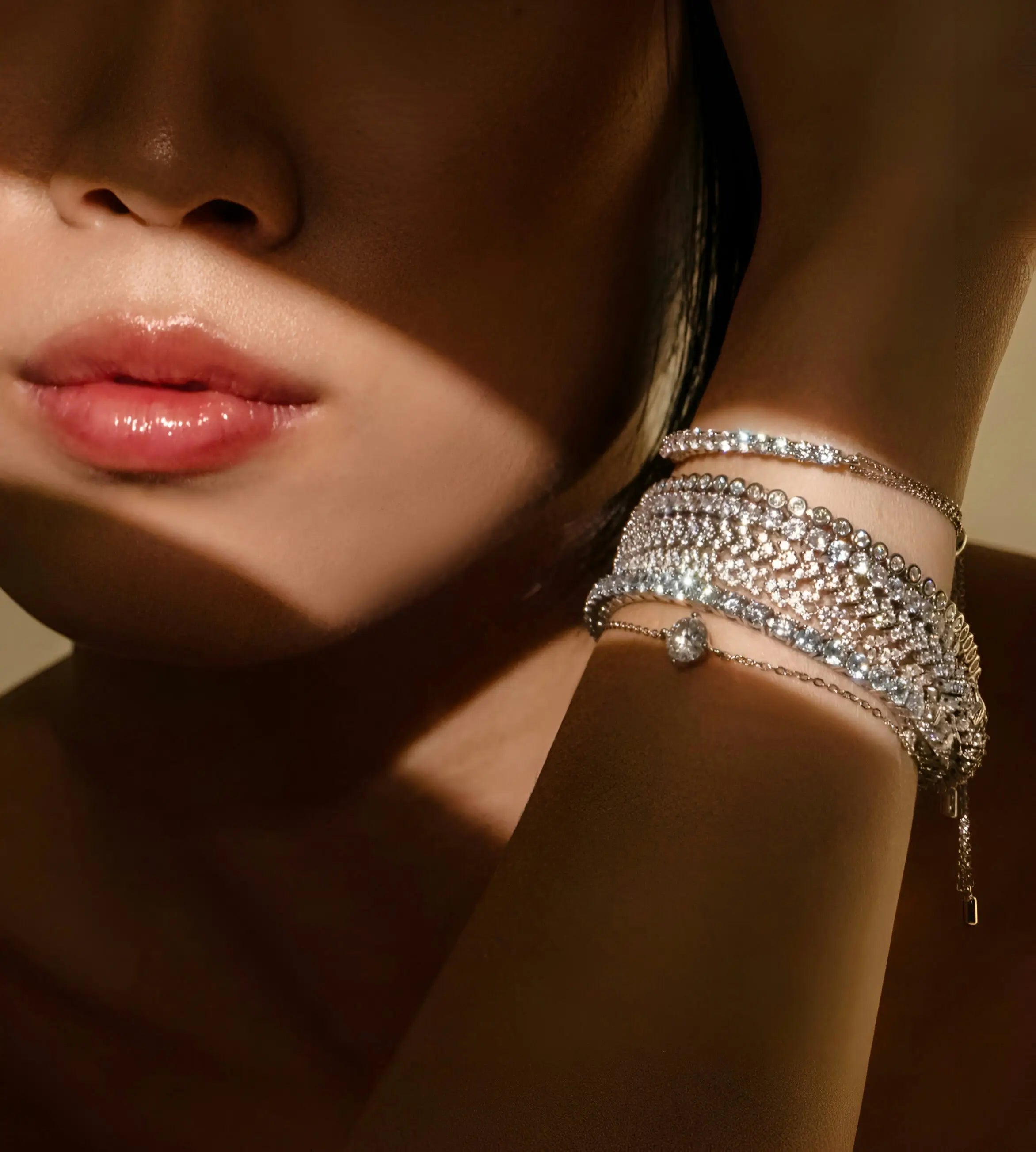 Since layering is part of our brand’s DNA, that vision led us to create tennis necklace sets and tennis bracelet stacks that layer seamlessly. We also introduced a tennis necklace with charms to bring in personalization and expand the way tennis pieces can be styled.