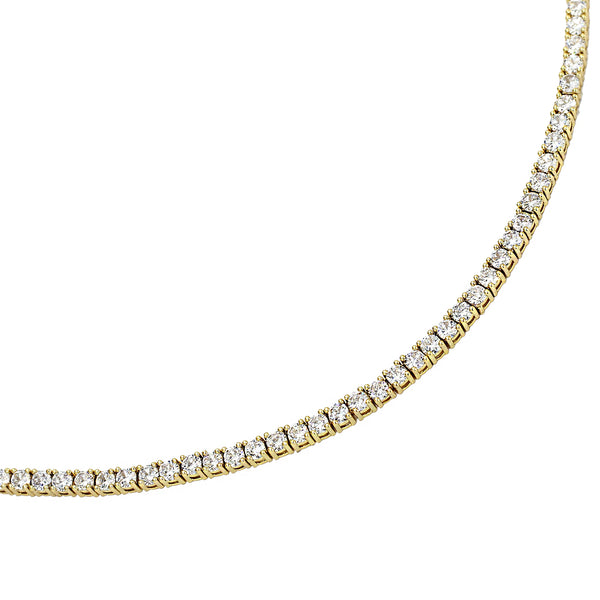 The Gold Tennis Necklace, a single gold necklace adorned with a continuous line of sparkling round crystals. This classic and elegant piece adds a refined shimmer, perfect for elevating any outfit with its timeless tennis chain design.