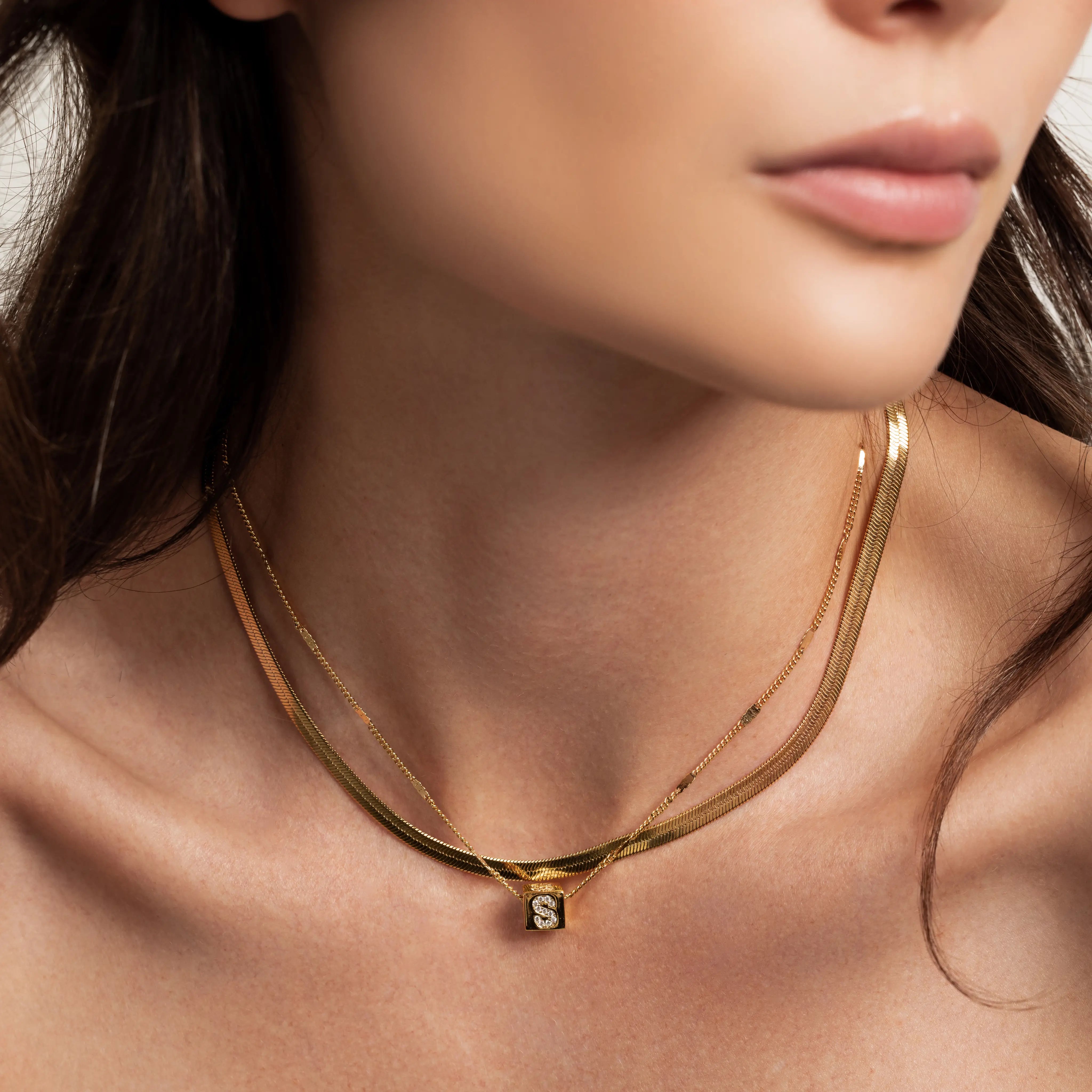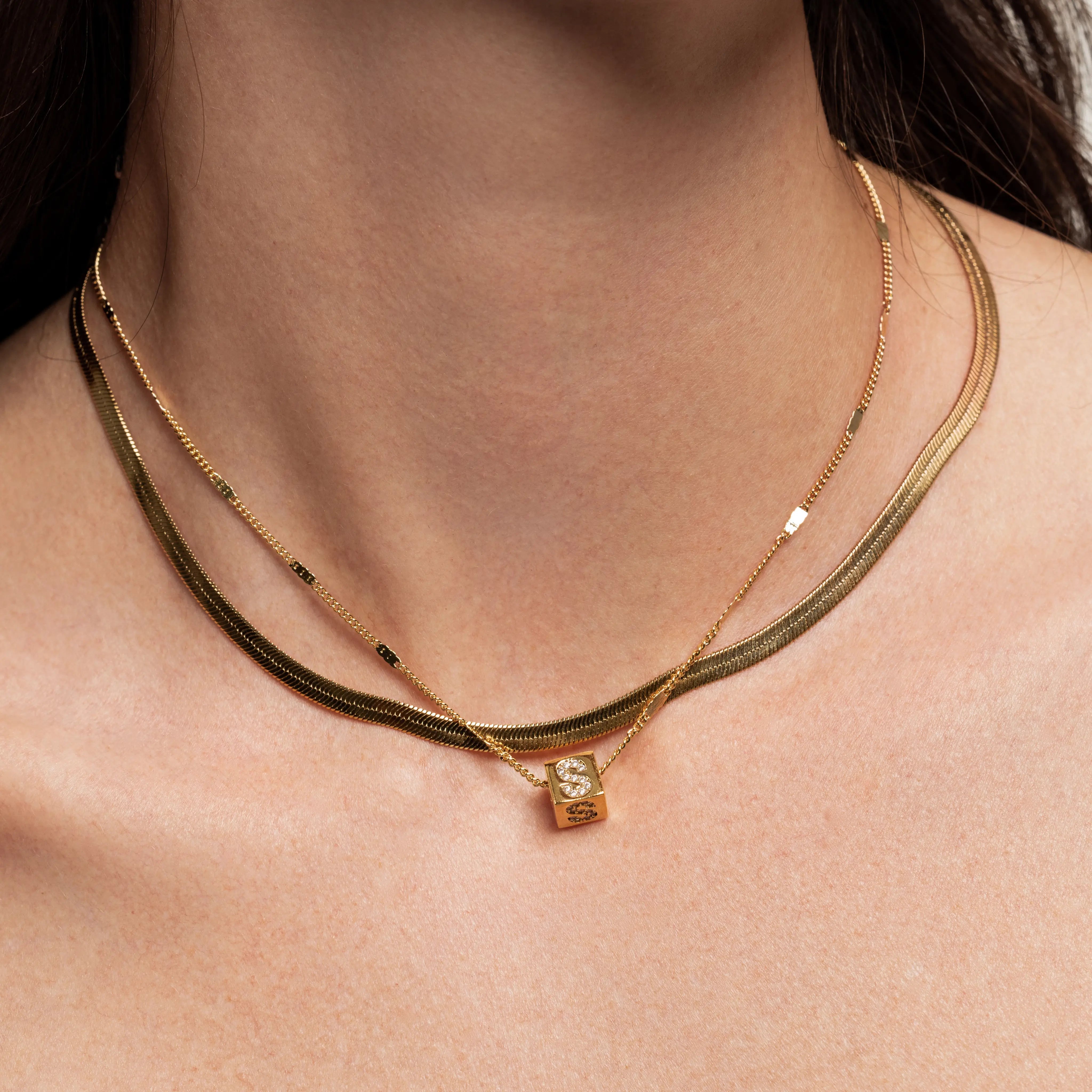 This duo was made to sit close and say a lot. Featuring a sleek snake chain paired with a dainty gold-plated letter pendant, it’s the kind of everyday set that feels both intimate and iconic. Tarnish-resistant and crafted from stainless steel, it’s designed to be worn on repeat—whether you're layering up or keeping it simple.