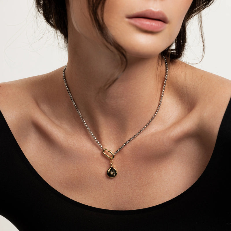 For those who want a dainty yet powerful piece, the Box Charm Necklace is the perfect choice. With its mixed metal design, this necklace adds just the right touch of elegance and edge, making it ideal for everyday wear.