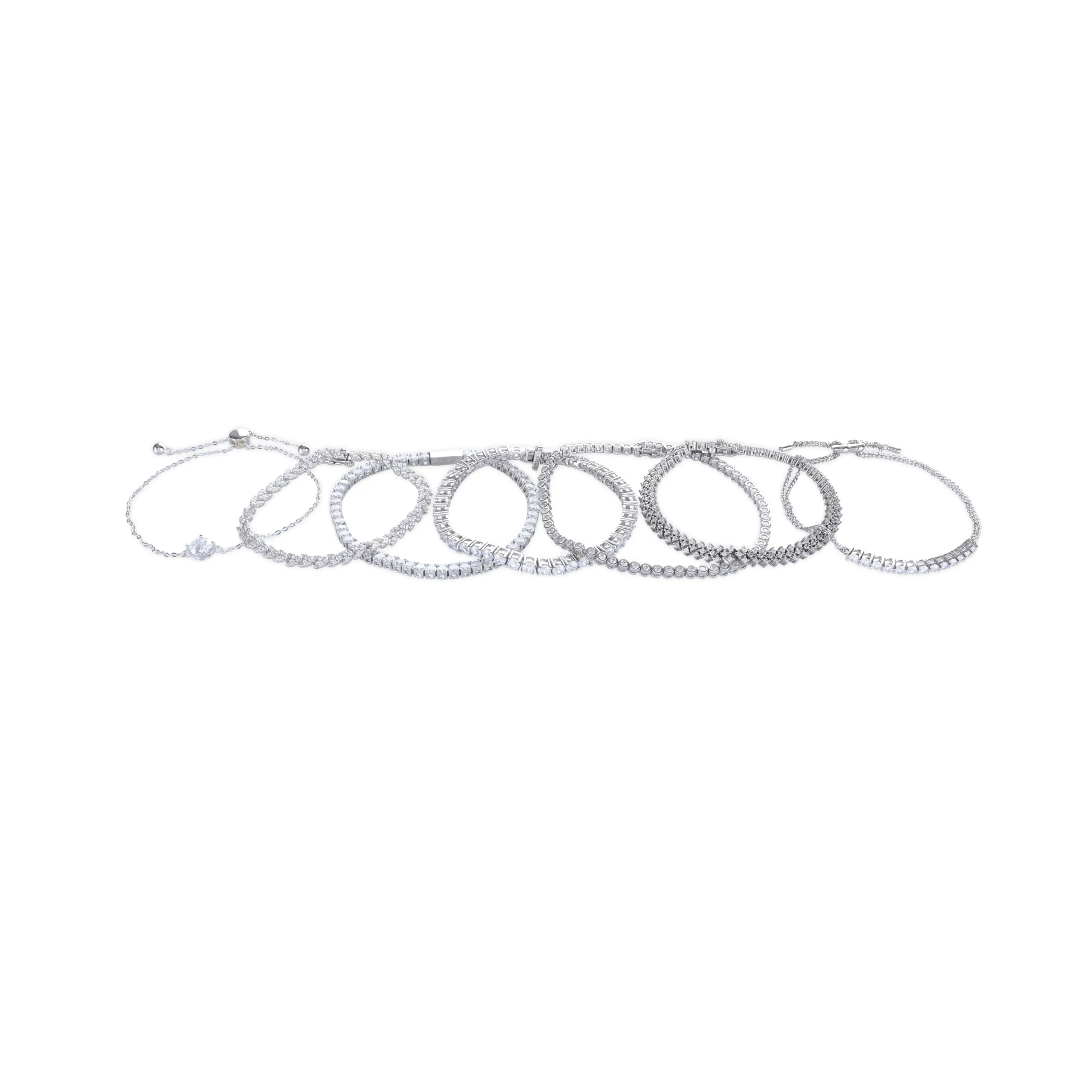 Meet 'Supernova' - a timeless piece with just the right amount of shimmer to elevate any look. This elegant stack of seven tennis bracelets, crafted from premium 925 sterling silver and adorned with radiant moissanite stones, will add a delicate touch and understated charm to your personal style.